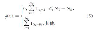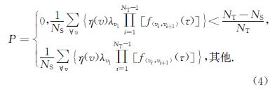 其中:η(v)为源数据包丢失的数量,0<η(v)<NS; λv1为v1的概率,f〈i,j〉(τ)为在时间间隔τ内,从状态i转移到状态j的概率,详细计算过程