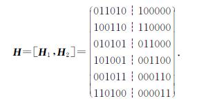 在视频传输系统中,FEC码被用于保护视频数据.纠错码类型一般选用解码快、时延低以及可靠性高的码型.已有的相关研究工作有喷泉码[20]、里所码(Reed-Solomon,RS码)[21]、低密度奇偶校验(LDPC)码[22]和Turbo码[23]等.极化码采用串行干扰消除的译码算法,译码复杂度高、时延大,无法达到实时的低复杂度译码.RS码是一种最大距离可分码,编译码较为复杂.相对于LDPC码,RS码是一种基于伽罗瓦域的多进制编码,每个编码的数据包符号由伽罗瓦域(GF)2m个元素(记为GF(2m))组成,伽罗瓦域越大,编码码长越长,但计算量越大.因此实际使用较为受限.LDPC-staircase编解码器的平均编解码速度比GF(28)上的RS码编解码器快32.4倍,其中译码器快10.2倍[24].由于适当的奇偶校验矩阵结构,LDPC-staircase码具有非常高的编解码速度[25-26].因此,最终选择LDPC-staircase码,该码型可以实现低复杂度的编码和译码处理.LDPC-staircase码属于LDPC码,它的奇偶检验矩阵H是一个(NT-NS)×NT的矩阵,H矩阵由两个子矩阵H1和H2组成.H1矩阵是一个(NT-NS)×NS的矩阵,其列对应于源符号,每列有N1个“1”,每行至少两个“1”; H2矩阵是一个(NT-NS)×(NT-NS)的矩阵,其列对应于奇偶检验符号,具有阶梯结构.NS=6,NT=12,N1=3时,奇偶检验矩阵H为[25]: