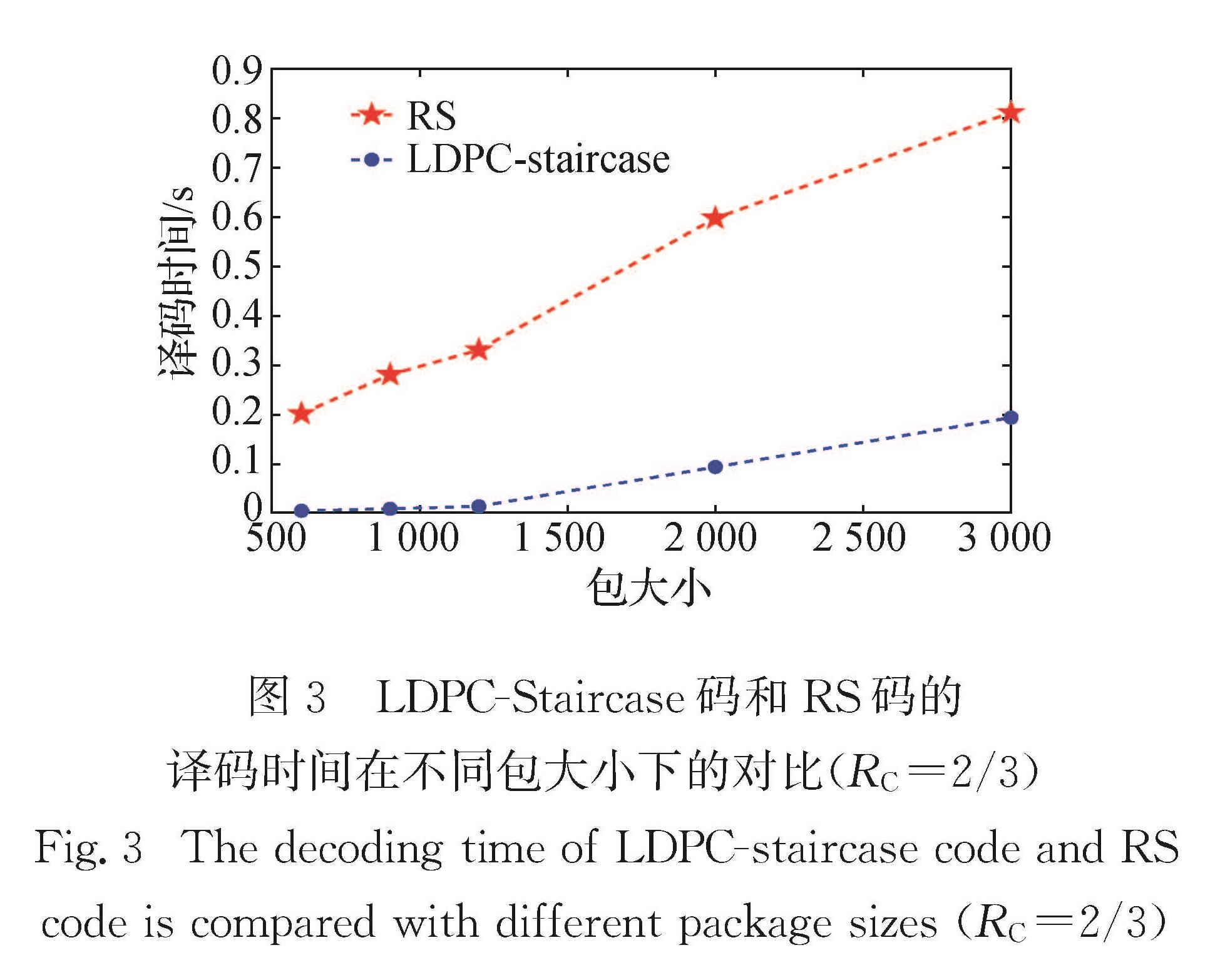 图3 LDPC-Staircase码和RS码的译码时间在不同包大小下的对比(RC=2/3)