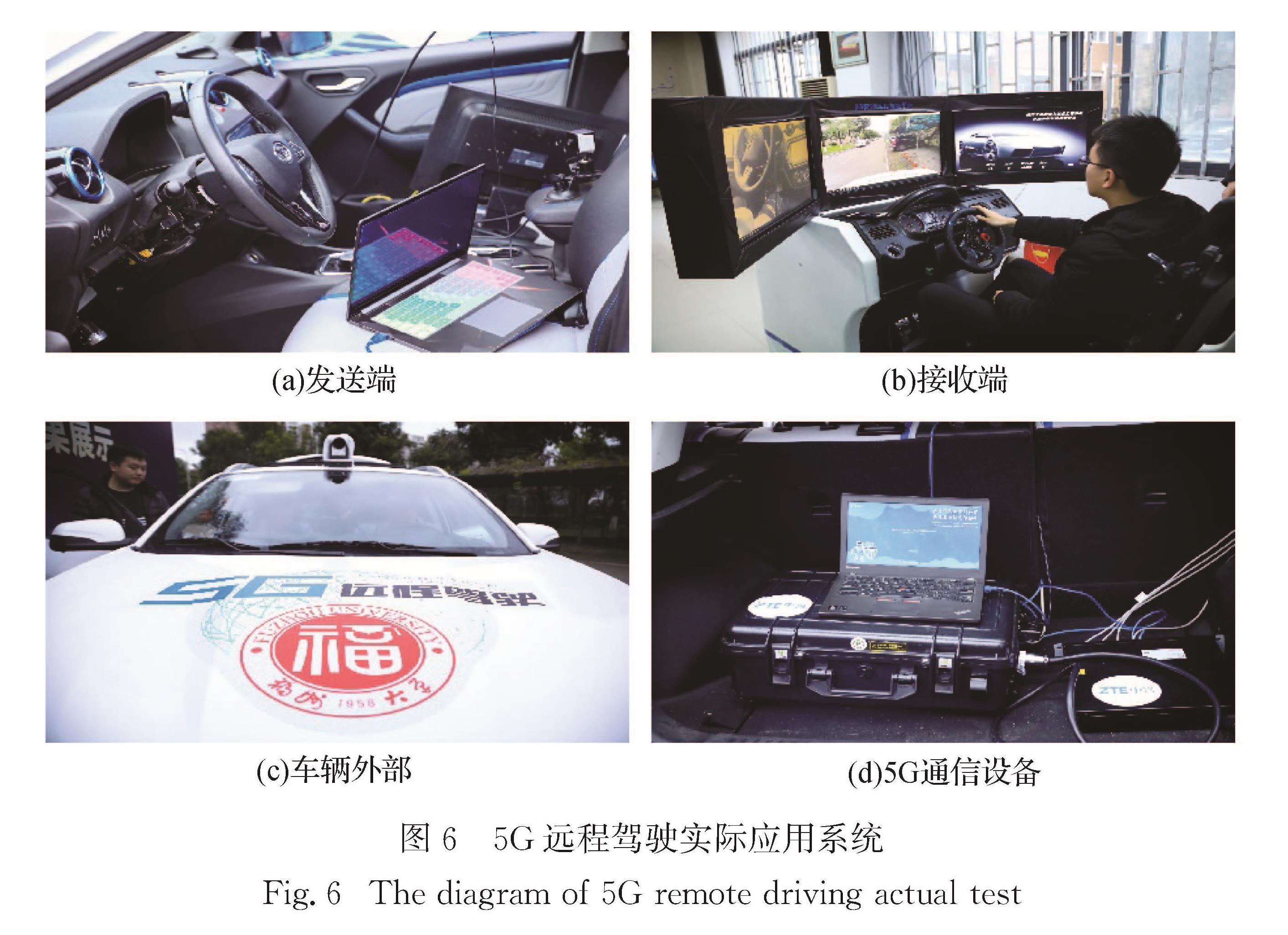 本节将动态FEC方案在5G远程驾驶系统中进行实际测试,测试系统如图6所示.该系统在汽车上搭载高清摄像头,采集视频通过5G网络回传到室内驾驶舱的屏幕上,驾驶员可根据视频路况,进行实时远程操控方向盘、油门以及刹车.测试地点在福州大学物理与信息工程学院,采用中兴的5G通
