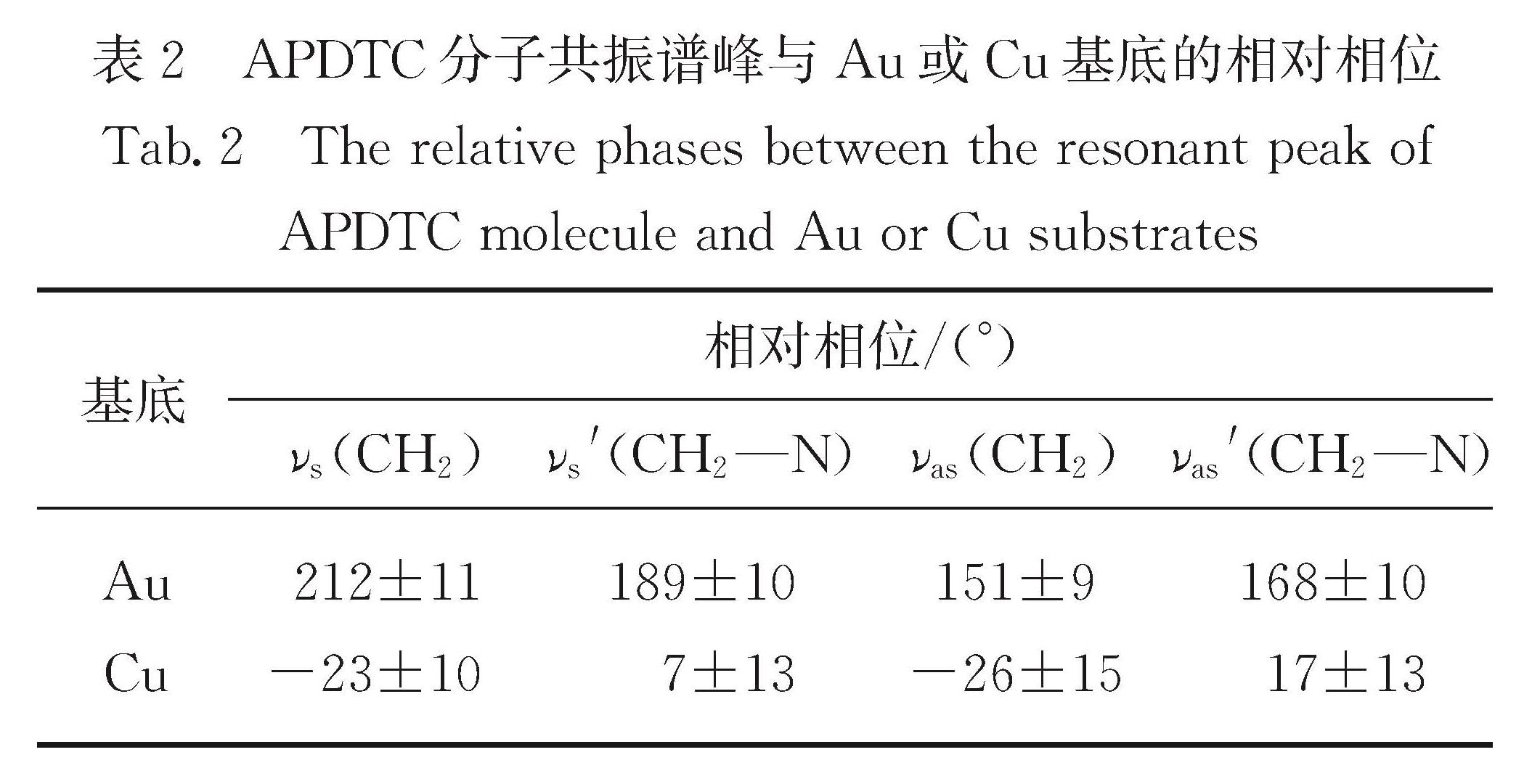 表2 APDTC分子共振谱峰与Au或Cu基底的相对相位