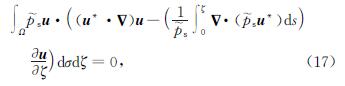 其中,(·,·)表示在L2(Ω)上的内积,(·,·)p ~s:=(p ~s·,·),b(U~,φ)是耗散项在分布意义下得到的项,c(U~,φ)是边界项在分布意义下得到的项,e(U~,U~,φ)是其余项在分布意义下得到的项,则U~(t,ω)是系统(12)~(13)的弱解.